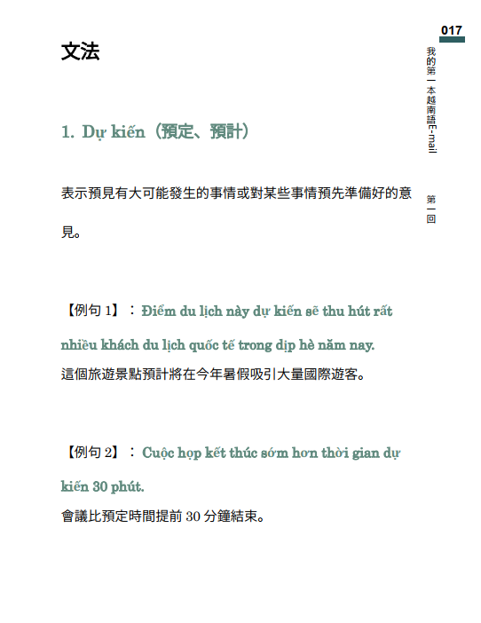 文法1:Dự kiến(預定、預計)