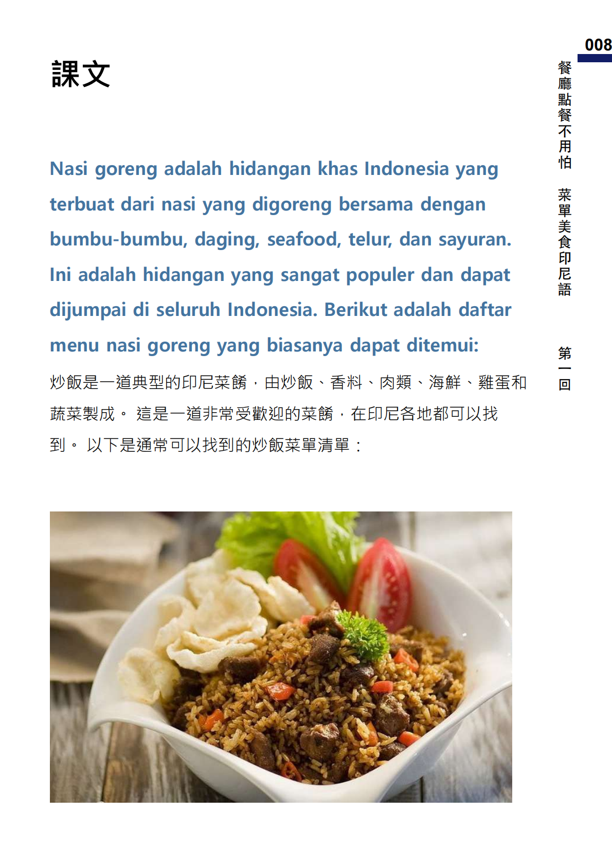 在這本《餐廳點餐不用怕 菜單美食印尼語》的教科書中,我們將帶領讀者探索印尼語的美妙世界,特別是與餐飲有關的實用詞彙和表達。這本書專為希望在印尼餐廳自在點餐的學習者設計,無論您是旅遊愛好者還是對印尼文化感興趣的學生,都能從中獲益良多。