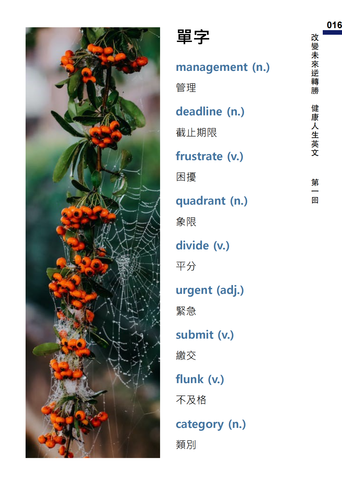 在這本名為《改變未來逆轉勝 健康人生英文》的教科書中,我們精心設計了一個獨特而有效的學習體驗,旨在幫助學生不僅學習英語,還能培養健康的生活方式。全書共118頁,每一頁都是對於學習與生活的深入探討,讓讀者在語言學習的同時探索健康的重要性。