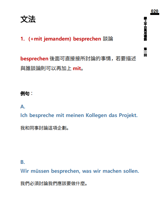文法1:(+mit jemandem) besprechen 談論