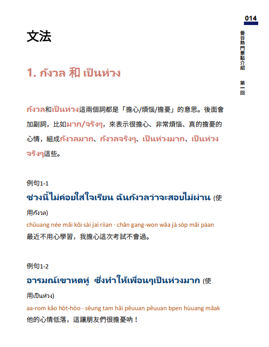 文法1:กังวล 和 เป็นห่วง