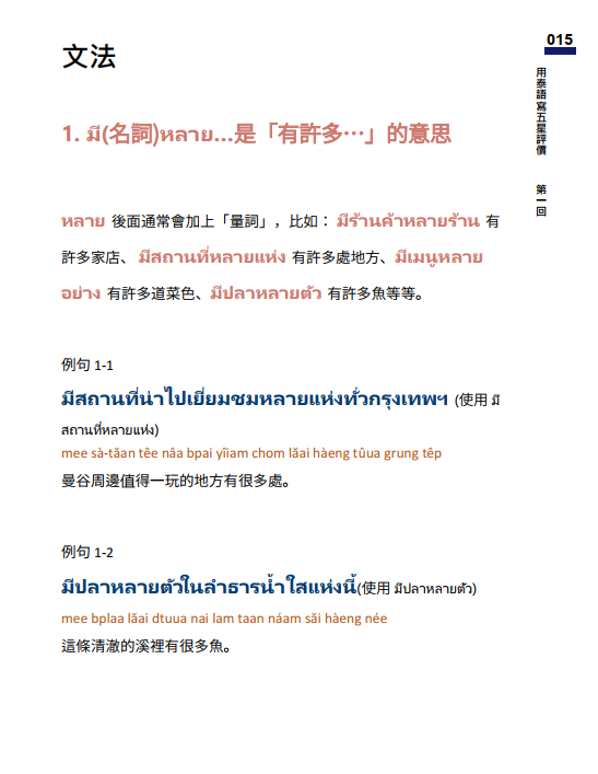 文法1:มี (名詞) หลาย...是「有許多...」的意思