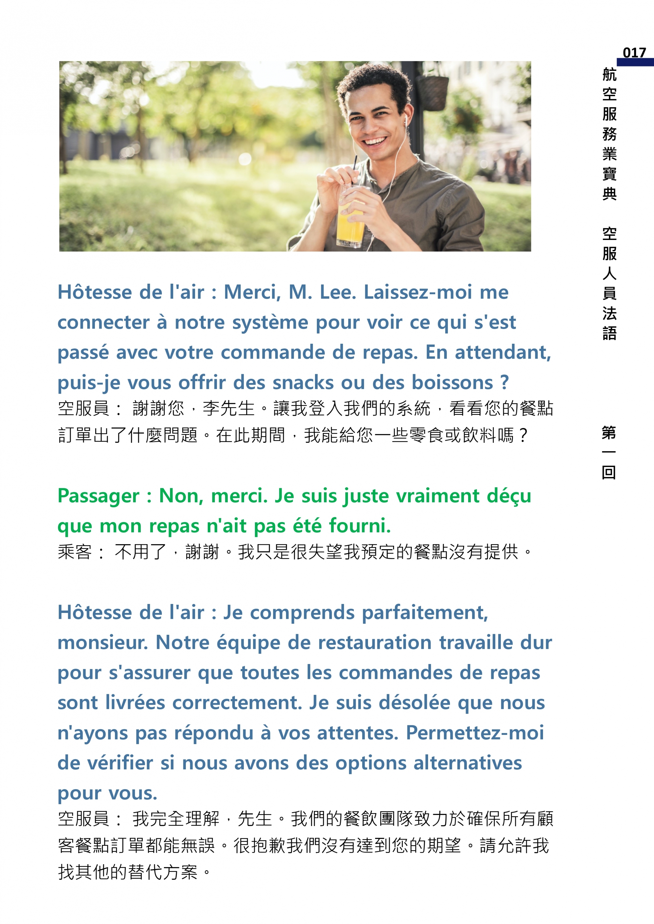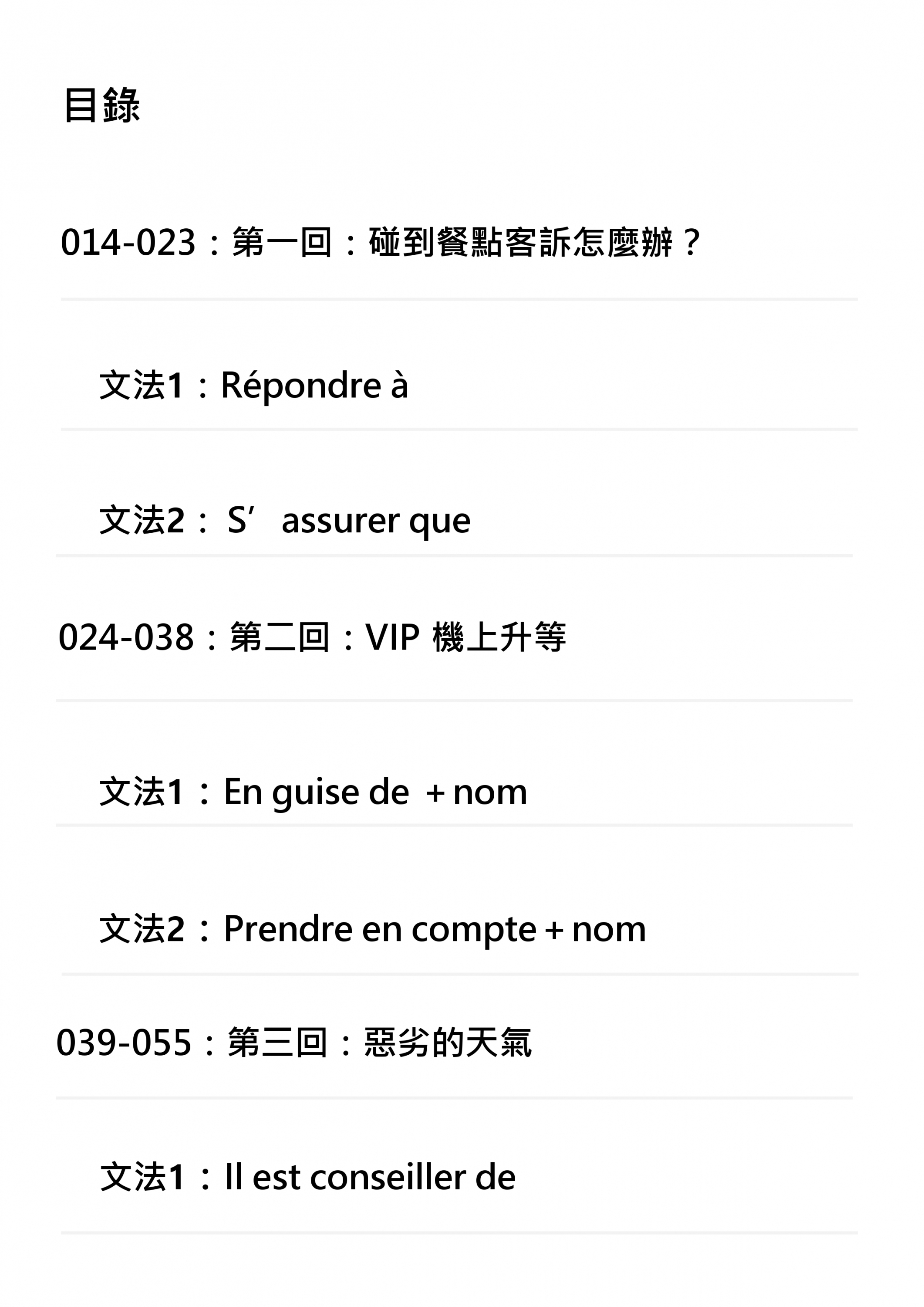 在萬米高空,每一句對話都必須精確、迅速且符合嚴格的行業標準。一句錯誤的法語廣播,可能引發旅客恐慌;一次不當的措辭,可能降低服務體驗,影響航空公司的專業形象。傳統的法語教材從未深入探討航空服務的複雜性——如何專業地處理機艙內的突發醫療狀況?如何溫和而堅定地執行安全規定?如何用最優雅的語言解決旅客的抱怨?