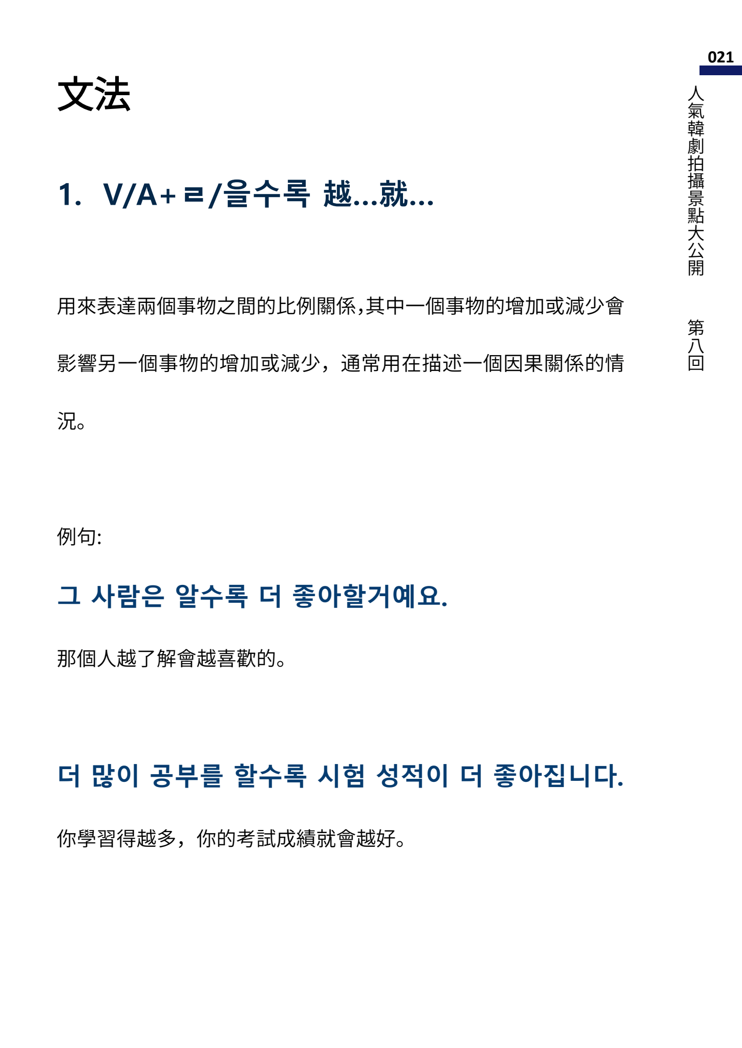文法 1:V/A+ᄅ/ 을수록 越...就...