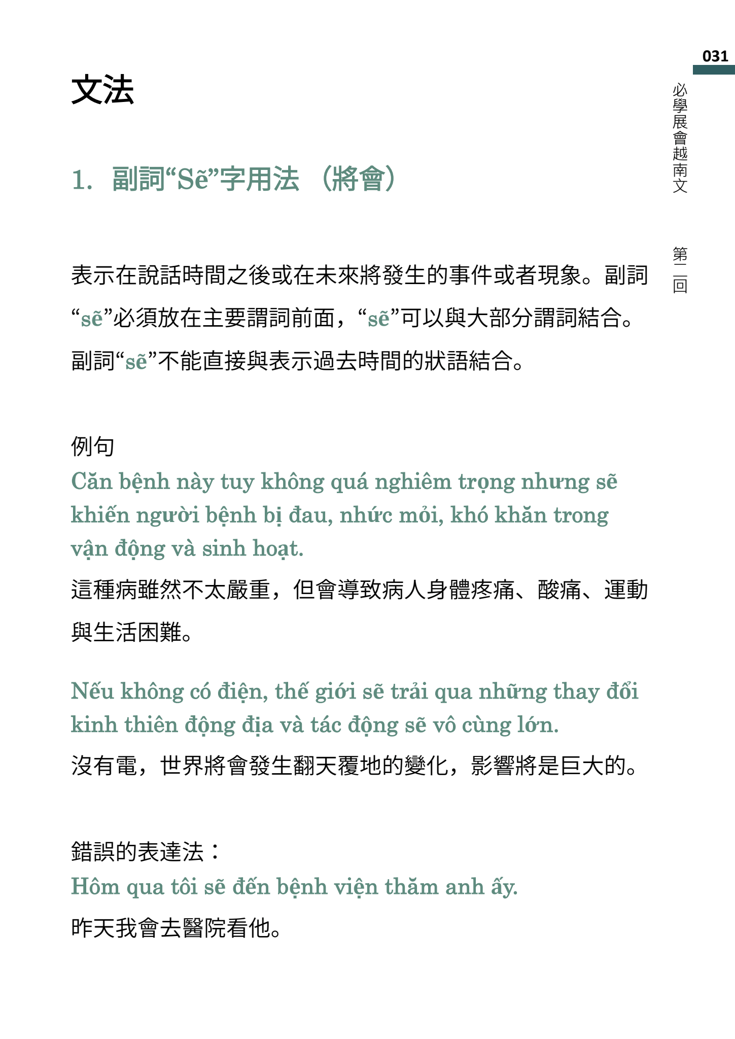 文法1:副詞“Sẽ”字用法 (將會)